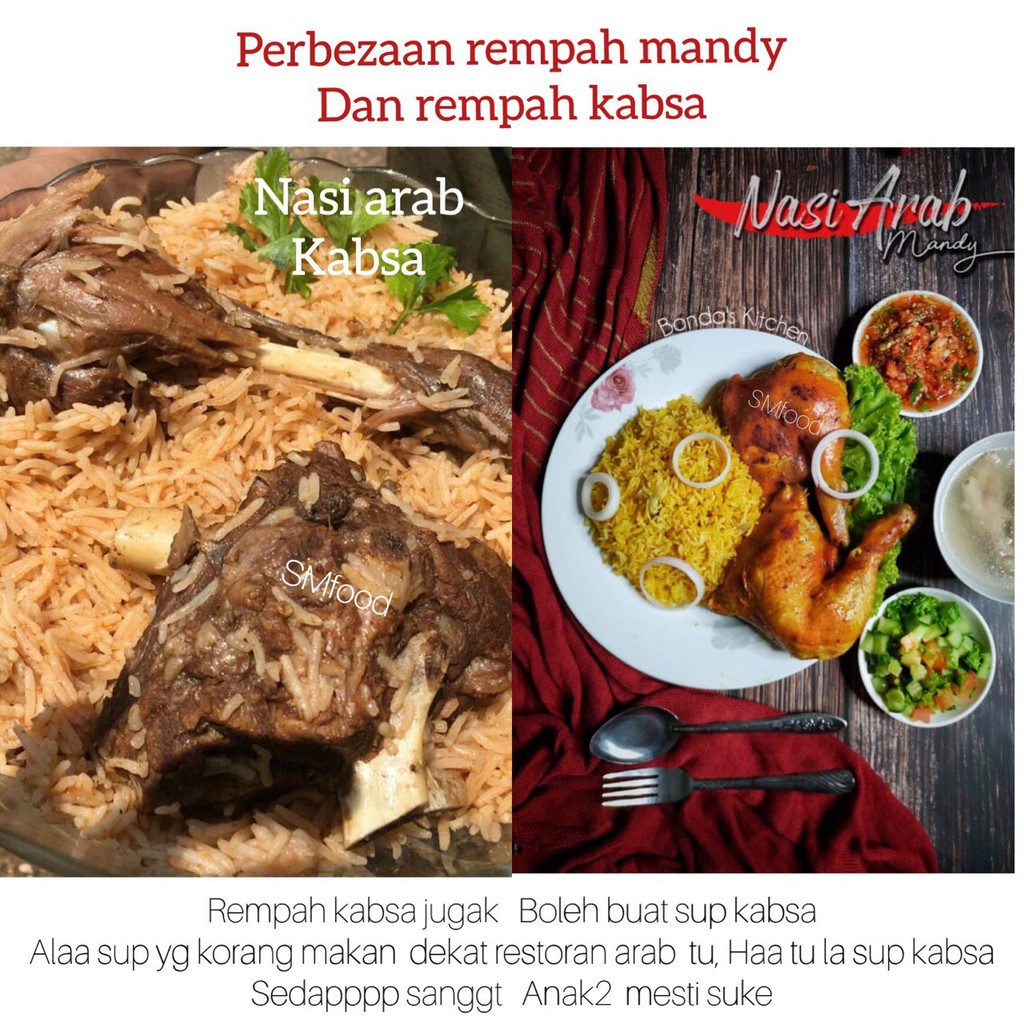 06062018 Selama ini masa korang makan nasi arab pernah tak tertanya apa bezanya jenis-jenis nasi arab seperti nasi mandi dgn nasi kabsah dgn nasi maklubah dan lain-lainKebanyakan kita orang malaysia akan bandingkan nasi-nasi arab lain dengan nasi mandi sebab nasi mandi tu paling common di Malaysia. 14092018 Kambing yang digunakan menjadi lauk khusus nasi mandi ini diproses dengan cara di-oven dan ditanur.